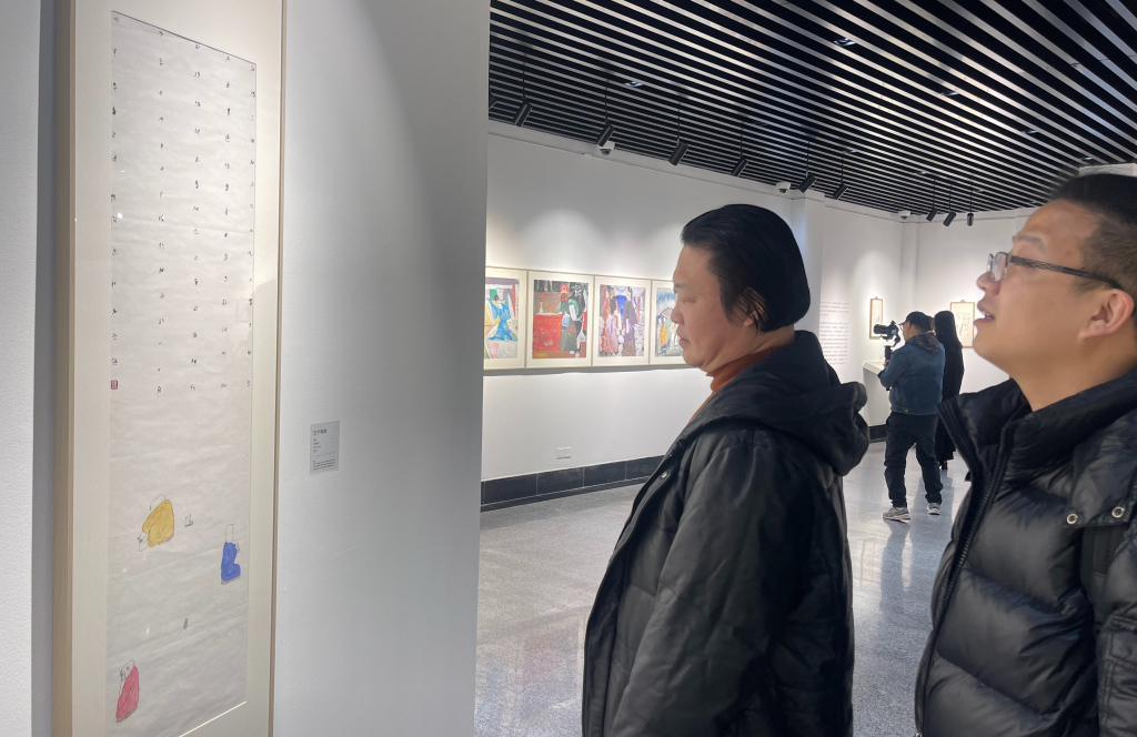 At the exhibition, Gu Cunyan's paintings
