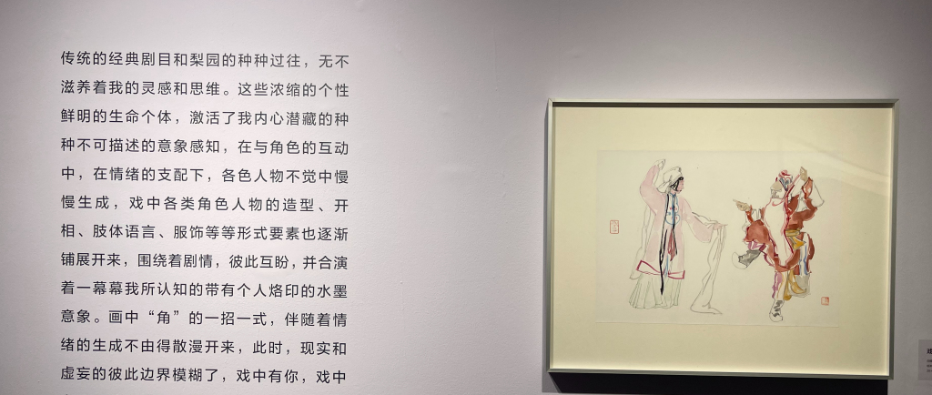The exhibited artist Chen Jiu's theatrical paintings reflect the joys and sorrows of life. Through simple and elegant brushstrokes, the paintings move between light and dark, refined and popular styles, revealing not only form but also spirit and artistic conception.