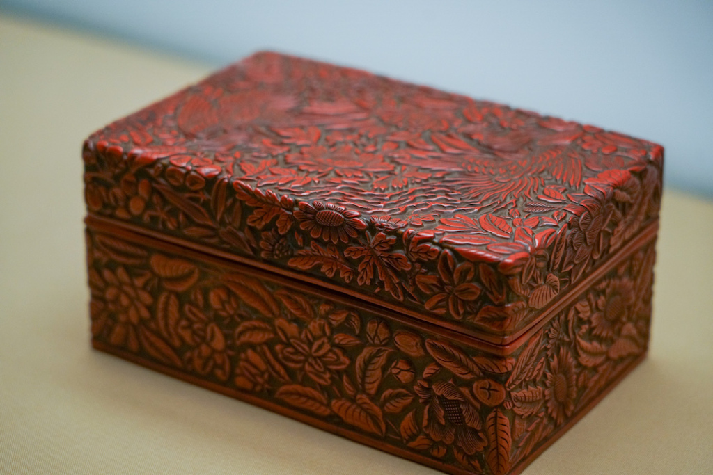 Lacquer carving is the art of carving patterns into repeatedly applied layers of red lacquer. Because each coat is only a few microns thick and the second layer must be dried before the next one can be applied, carving lacquer is a costly, time-consuming, and paint-intensive craft.