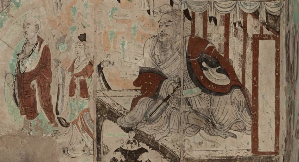 In the Vimalakirti Sutra transformation paintings at Yungang Grottoes, there are various framed, single-framed, and multi-framed compositions. There are currently 58 Vimalakirti Sutra transformation paintings in Mogao Grottoes. Among them, the Vimalakirti Sutra paintings in Caves 103 and 220 adopt a symmetrical composition with the two monks sitting and discussing the Dharma, which has typical comparative significance. The Vimalakirti in these two caves is exactly the same in terms of clothing, sitting posture and expression.